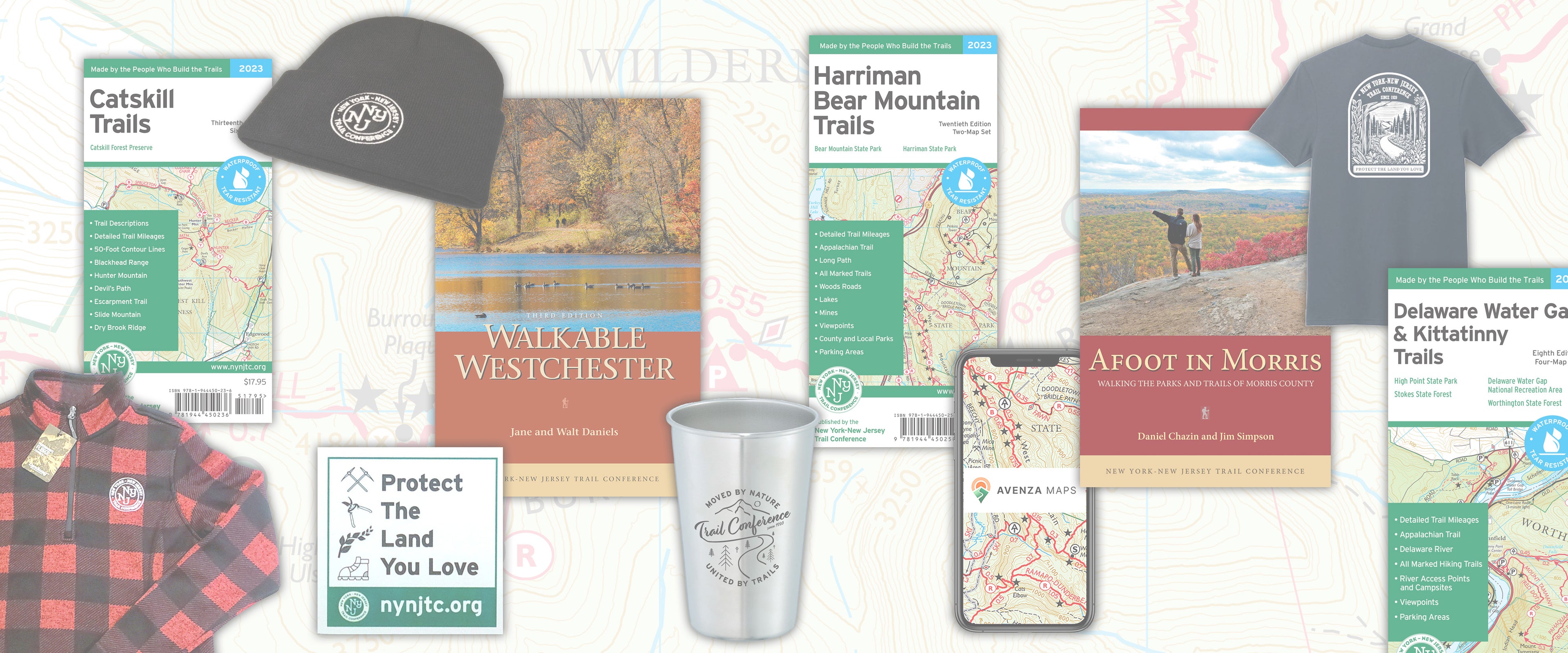 Check out our selection of trusted maps and guidebooks, apparel featuring Trail Conference graphics, and other gear for use both on and off the trail! Our popular print maps are printed on waterproof & tear-resistant Tyvek, and digital maps are available through the Avenza Maps app.